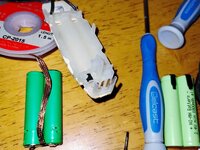 Remove the protective covers from the new battery's tabs and push them into the PCB and the battery into the holder. Bend over tabs and solder them to the pads. Reassemble and place on charge. My shaver is still working on that first charge 9 days later!