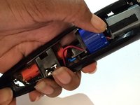 Pull the wires attached to the battery off of the power connectors before completely removing the back panel.