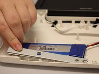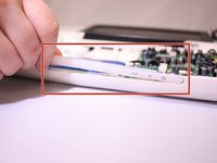 Using the Tweezers from the iFixit repair tools, pull the two white plastic connectors that connect the disk drive to the motherboard off detaching the disk drive from the motherboard.