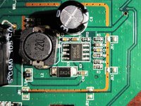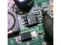 On the main PCB with the power jack, replace the MXT2410 switchmode regulator IC (SO-8 Package).
