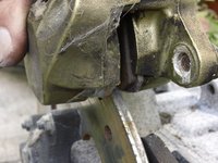 Remove the 15mm nut securing the lower front corner of the swing arm.