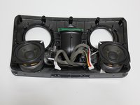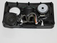 Remove the speaker frame by pulling vertically and flip to reveal the speakers.