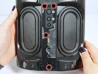 Using the metal spudger, peel the backing off of the back panel of the speaker to reveal 4 screw holes.