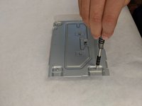 Unscrew the four inner screws that are 7.3 mm long using a Phillips #1 head screw driver to remove the disk drive from the top face plate.