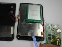 • Gently pry the LCD display from the the touchscreen by using the spudger along the edges.