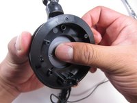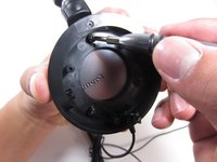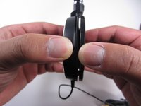With your thumb, push the middle of the aluminum piece outwards while holding the ear cup base with your other hand.