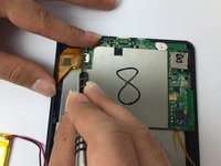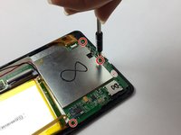 • On the bottom of your tablet, take your J000 screwdriver and take out the three 3mm screws that hold down the motherboard.