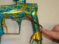 Use 5/64" allen key to remove each screw from eye covers (Located on both sides of the paintball marker.)