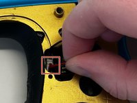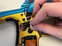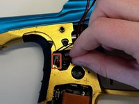 Grasp the black eye sensor wire and pull it completely through and out of the grip frame on the battery side.