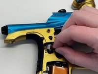 Remove the four grip screws with a 5/64" Allen wrench. There are two screws on each side of the marker.