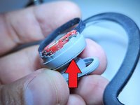 Start by peeling the edge of the rubber edging on the far end of the left ear piece. There should be a minor amount of glue holding the rubber to the earpiece housing; be careful to not rip the rubber, just take your time cutting back any glue.