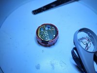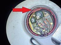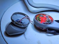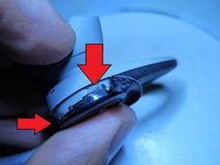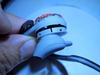 To remove the button faceplate, you must carefully remove the glue points holding the plate onto the battery module inside the assembly. It also helps to gently pry the side of the housing away (but not too much!).