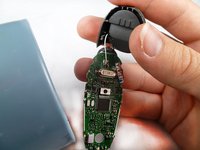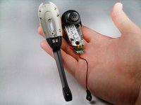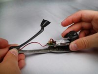 Use the heat gun or blow dryer to melt the glue that connects the wires to the headset's motherboard.