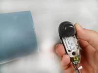 Use the heat gun to melt the adhesive connecting the headset face to the speaker casing.