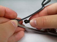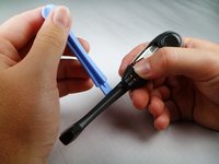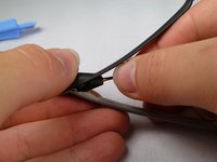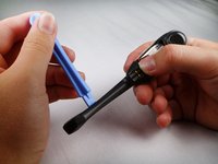 After heating the headset, use the plastic opening tool to carefully pry the black cover from the headset.