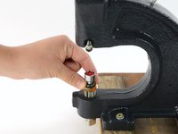 Use your fingers, a screwdriver, or a hex key, as needed, to unscrew the tightening mechanism on the side of the press near the top die fitting.
