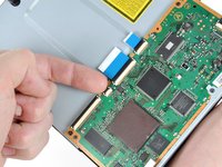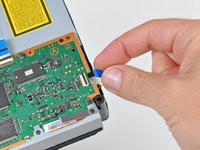Using your fingernail, lift the flap on the ZIF connector holding the Blu-ray lens Data cable to the Blu-ray control daughterboard.