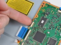 Using your fingernail, lift the flap on the ZIF connector holding the Blu-ray lens motor cable to the Blu-ray control daughterboard.