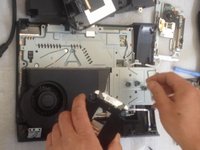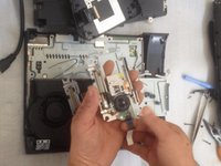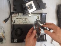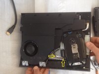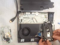 Disconnect two flex-cables and move the Laser Unit. Remove the two screws and the small cable and then take out the Power Supply Unit.