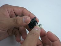 Using tweezers, remove the small piece with a cylindrical top that is located to the left of the inner plastic frame.