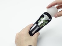 Hold the base of the controller with one hand and with the other carefully pull up on the white spherical piece to remove it.