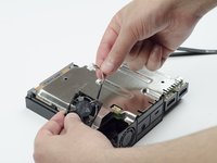 Using tweezers, carefully pull the multi colored bundled cable from its port connecting the fan to the console.