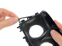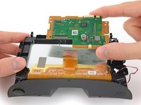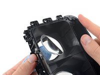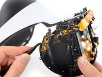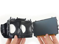 The single display is mounted to the lens assembly with a few screws and two clips, quickly unclipped by a spudger.