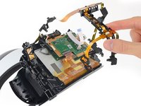Trim bits removed, we're able to detach the front panel of the visor unit to reveal a sea of flex cables and components.