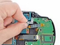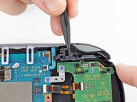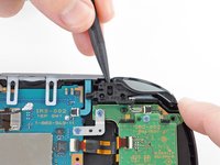Release the left shoulder button flex cable socket by using a spudger to pry open the tab.