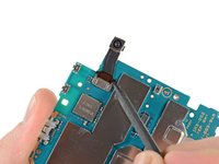A spudger and a tiny bit of force frees the front-facing camera from the motherboard.