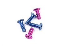 Colored screws! The pink-ish screws hold the motherboard in place while the blue screws hold attachments to the motherboard.