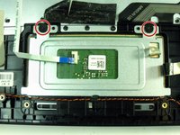 Use a Phillips #00 screwdriver to remove the two 2 mm screws securing the metal plate that holds the touchpad in place