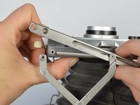 Remove the Phillips #0 6mm screw on the shutter mount and the washers using a size 5 nut driver.