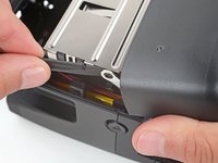• The small, plastic grommets inside the film door hinges can easily fall off during this step. Don't lose them—you'll need them for reassembly.