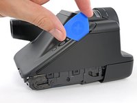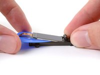 Insert the tip of an opening pick under the top left corner of the bottom cover, near the slider button.