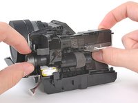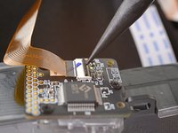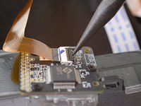 Use the flat end of a spudger to lift up the locking flap on the lens assembly ZIF connector.