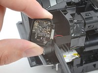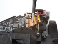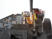 Use tweezers to pull the lens assembly cable out of its slot in the main board.