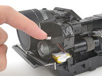 Use a Phillips screwdriver to remove the two 5.9 mm-long screws securing the viewfinder, one near the front of the viewfinder and the other along the side.