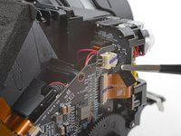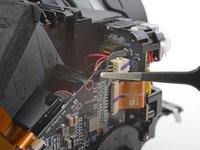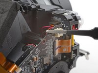 Pull the back cover off the camera and rotate it over the right edge to expose the flex cable.