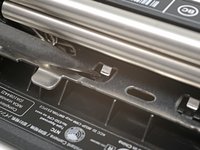 Use the tip of a spudger to depress both plastic tabs until their hooks release from the print roller—you'll hear an audible "click."