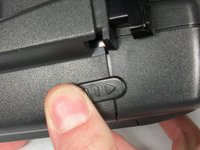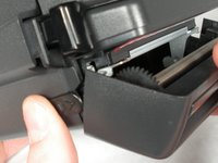 Fully open the battery/ cartridge compartment by sliding the side tab toward you.