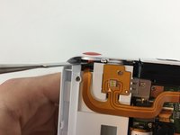 Gently push on the shutter button tabs upwards, until the tab is dislodged. Repeat same steps for other two tabs.