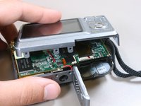 The back half (the half with the screen on it) should now be separate from the rest of the camera, but still attached by the ribbon.