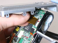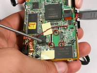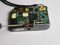 Using the Phillips #00 screwdriver, unscrew and remove the (3mm) screw on the bottom of the logic board above the tripod mount. Keep the screw for reassembly.