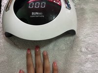 Before beginning, make sure that within the curing process, if you experience any heat spikes or discomfort, you remove your hand from the lamp immediately and allow time for your nail to cool off.