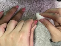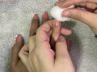 Dampen one of the cotton balls with the alcohol and wipe the nail until there is no longer dust on it.