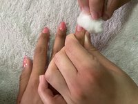 Dampen one of the cotton balls with the alcohol and wipe off the nail until all the sticky residue is gone.