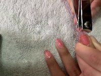 Start by cutting from one side of the nail then going to the other side with the nail clippers.