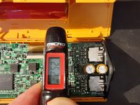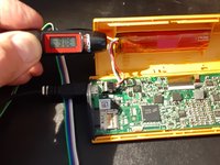 Leave the battery aside, inspect the PCB and clean any solder flecks or splashes away. Flow some solder on the "B+" and "B-" PCB pads.