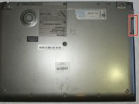 Flip the laptop over, with screen facing down to reveal bottom panel.